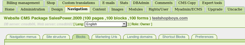 This can be achieved by going to the "Navigation" tab of the CMS-Admin and then clicking on the "Blocks" subtab.