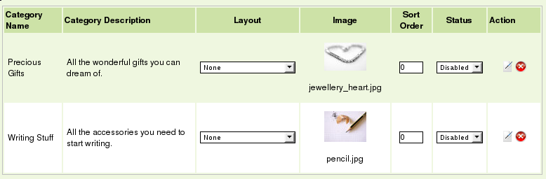 Exercise: Create the "Colorful Pencil", "Wedding Ring" and "Bracelet" Articles, associate them to the right Category, and give them Images. You may use these images from public domain: