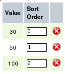 We notice that the values are in random order (100, then 30, and finally 50). Let's define the order in which they will be shown to the customers. Just fill in the Sort Order column with the expected Order of appearance and press the "Update" button. We now have a correct order: