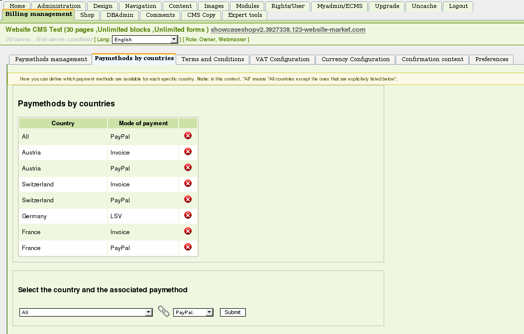 Note: In this example Germany cannot pay with Paypal even if we have defined ALL to paypal.